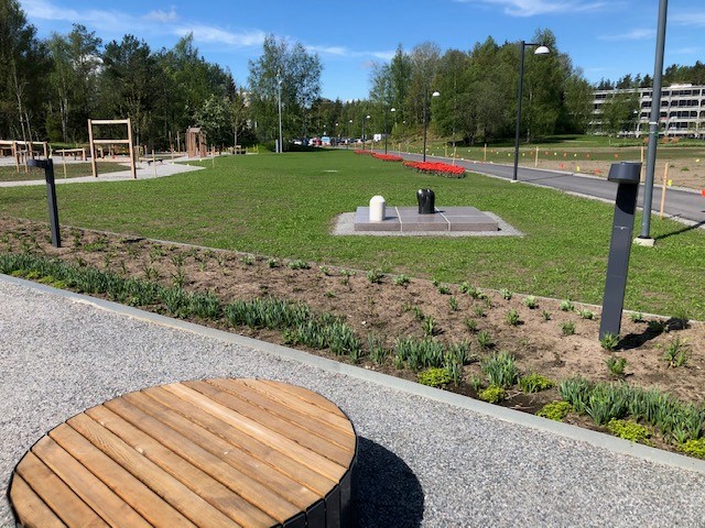 Nu finns det åter igen yta för att umgås, exempelvis i pergolan, i solstolar eller på gröna promenader. Till våren och sommaren kan vi njuta av ängsytor som kan locka fjärilar och bin och bidra till biodiversiteten, självklart har vi sparat fruktträden som funnits på platsen i många år. Vi har också byggt ett utomhusgym med ett flertal stationer och rustat upp motionsspår som vi hoppas kommer användas flitigt. Alla parkens stråk och platser har fått belysning för att skapa en god orienterbarhet och en trygg miljö.