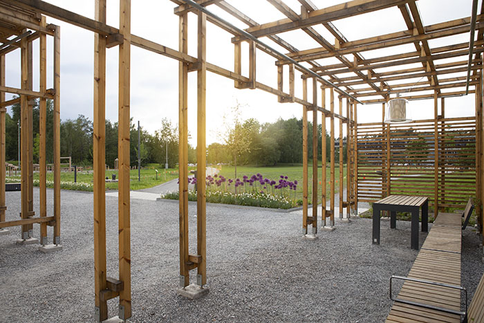 Välkommen ut i sjukhusparken utanför O-huset. Parken är utformad för att tillgodose flera olika önskemål såsom vila och ro i och kring den nya pergolan, träning i utegymmet, parkhäng på filt eller solsäng i det öppna parkrummet eller gå på upptäcktsfärd bland perennlabyrint och skulpturlek i Ungerska parken.