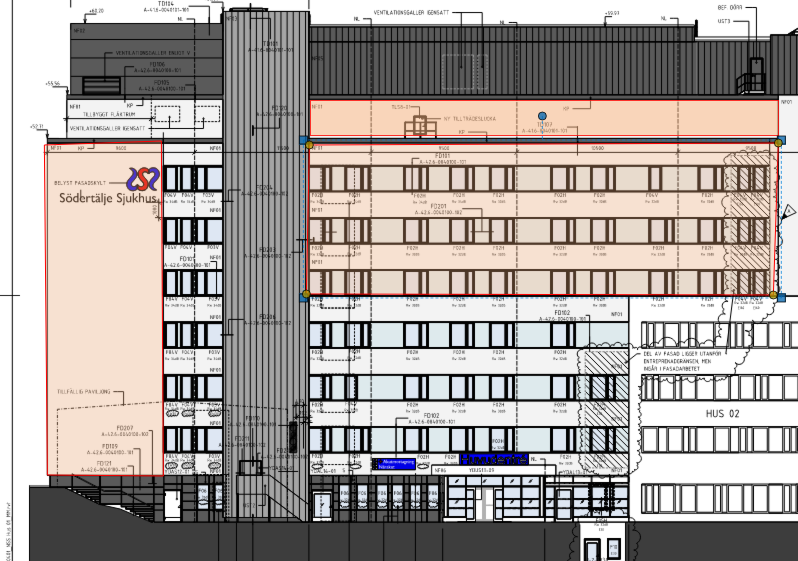 Under tiden som ställning byggs och fasadarbetet pågår kommer personal att arbeta utanför fönstren på hus 01. För att minska insynen ber vi er som bedriver känslig verksamhet att använda persienner eller motsvarande.