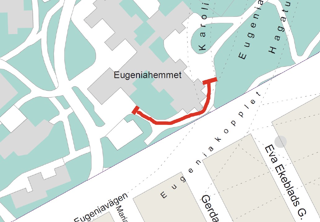 Gående, cyklister och fordon kommer inte kunna passera på Eugeniahemmets södra sida under perioden.