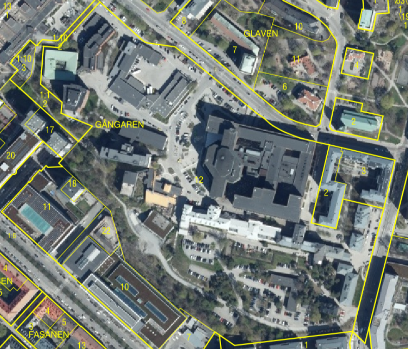 Tomtgränser sjukhusområdet - Lantmäteriet